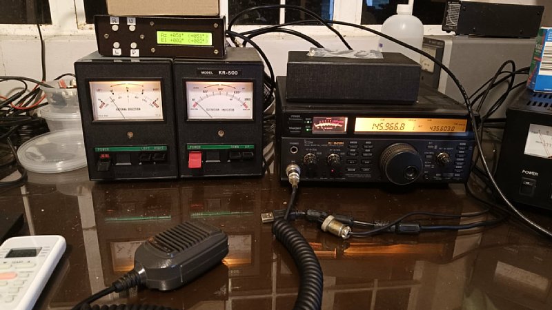 These are the ICOM IC-820H for satellite communications, the Kenpro Rotator KR-400, and the elevation rotator KR-500.