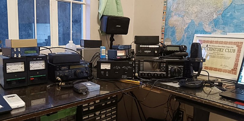 On the left is the ICOM IC-820H for satellites and a Kenpro rotator