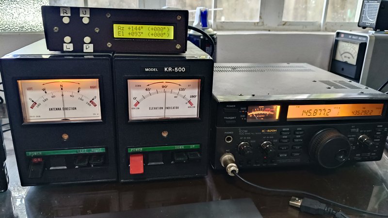 サテライト通信用の無線機ICOM IC-820HとケンプロのAz(KR-400)とEl(KR-500)ローターター2台