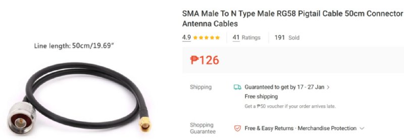 太いケーブにSMAコネクタが付いているので曲げ力に対して心もとないので変換ケーブルを通販Shopeeで注文しました