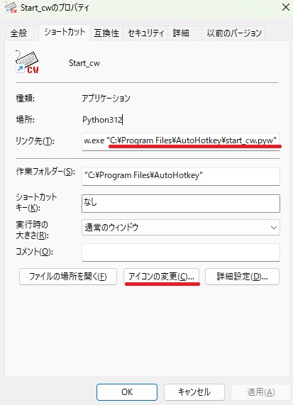 | Then open the properties and check the link to start_cw.pyw. Also, the icon is a Python icon, so change it to your own icon or a CWType icon. ![]() |