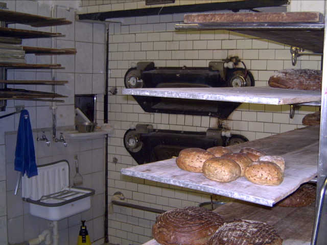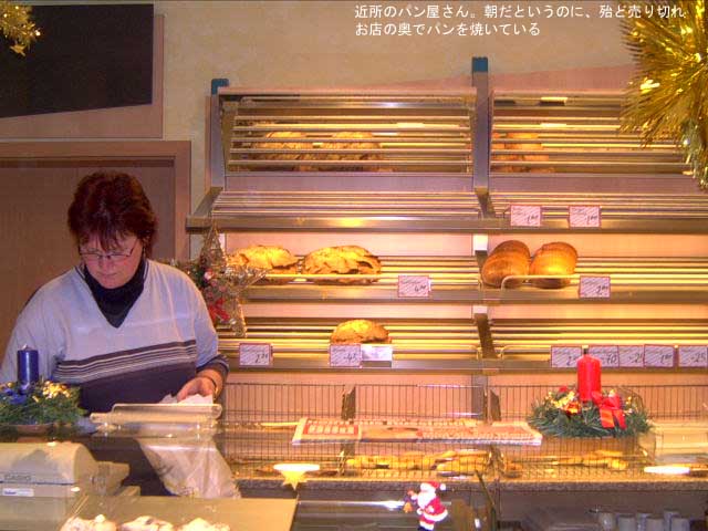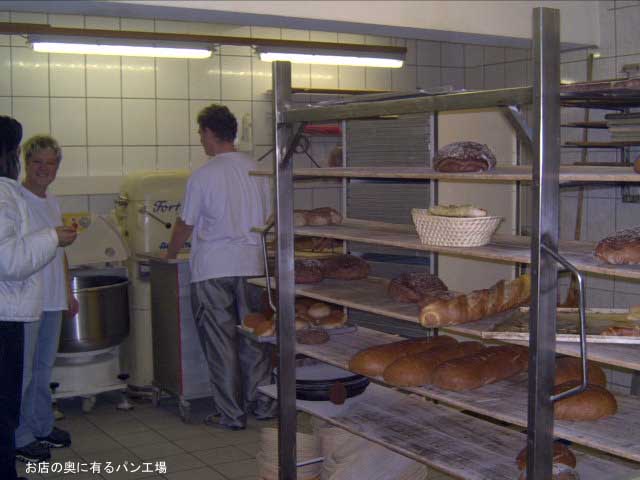 小さなお店の中でパンを焼いていた。陳列棚はほとんど売り切れ