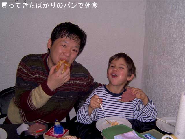 朝、奥様のstefanieさんと町のパン屋さんへ