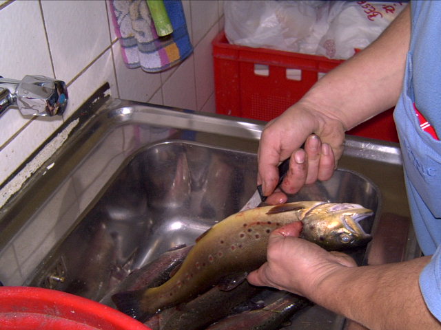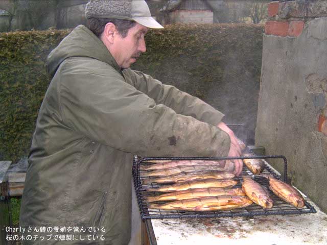 Peterの友達Charlyさんはマスの養殖をやっている。