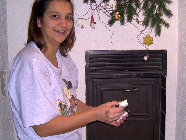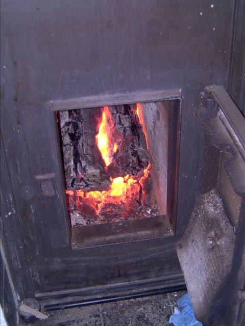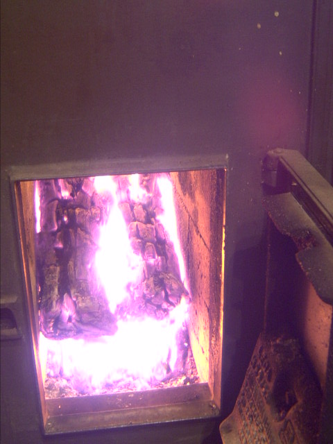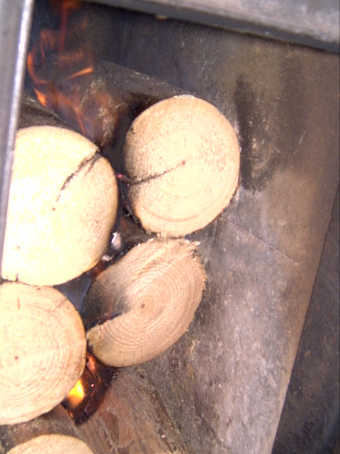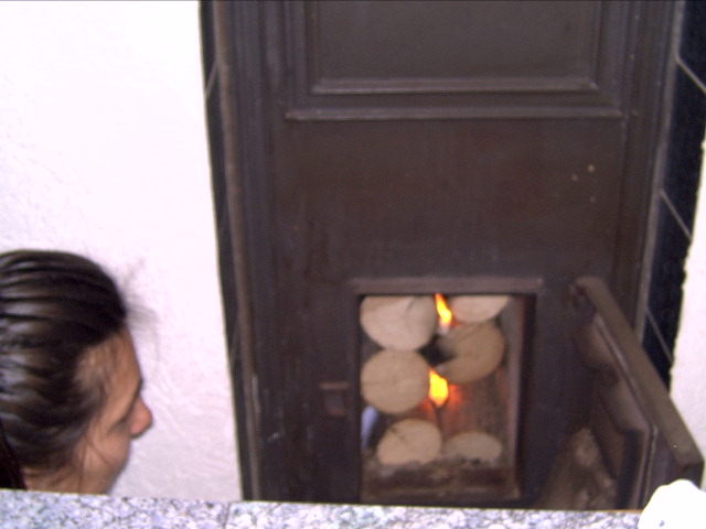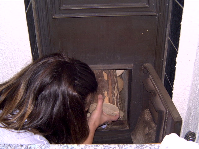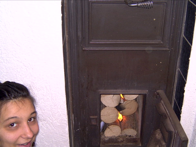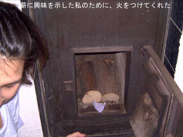興味しんしんに暖炉を覗いていたら、奥様が実際に薪を入れて火を付けてくれた