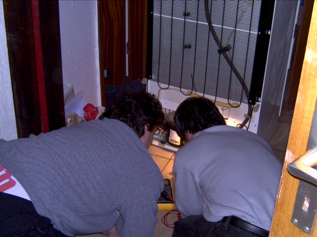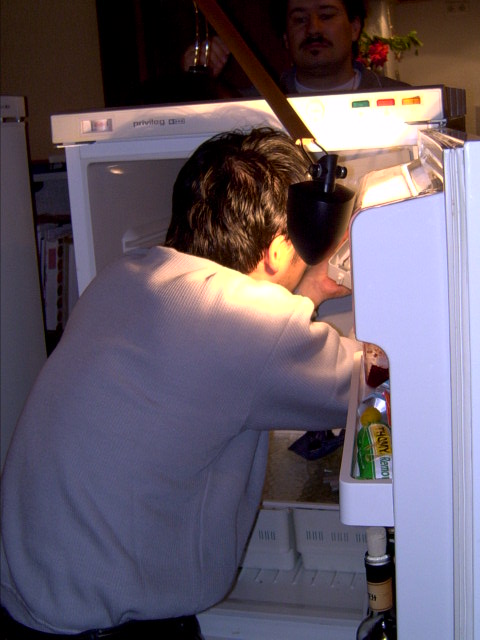 ということは、サーモスタットか霜取りタイマーの異常を疑い庫内を点検すると