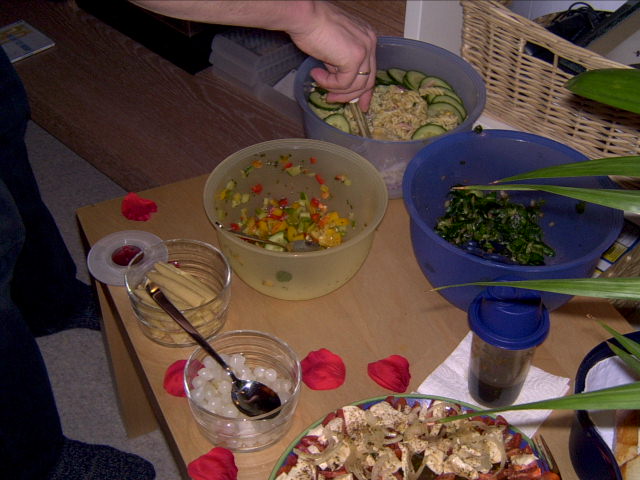 親しい仲間が集まって軽い食事とお酒を飲みながら歳が暮れるのをまっています。