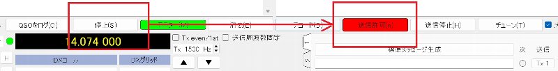 WSJT-Xの「送信許可」を押して赤い色に変えます
