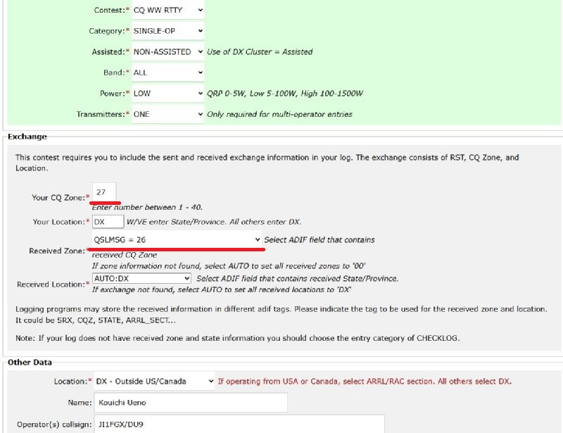 自分のCQ Zoneの記入と相手のCQ ZoneがADIファイルの何処に書いてあるか指定しないとAdif to Cabrillo Converterでエラーが出ます