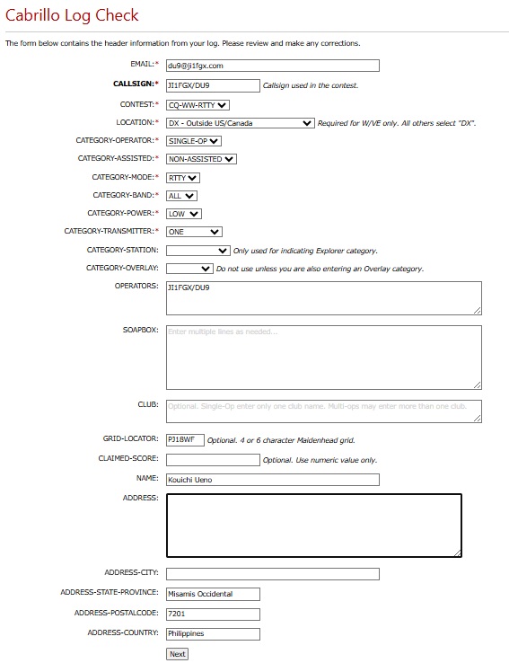 次にAdif to Cabrillo Converterというものが開きますのでデーターの確認と必要ならAddress等を書き加えます