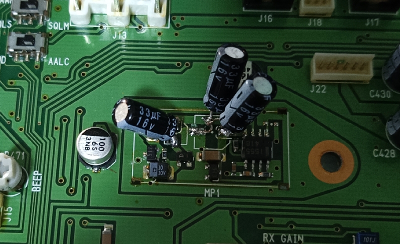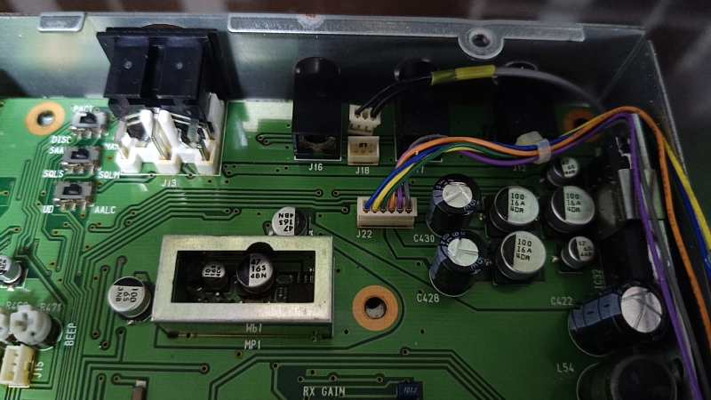 10)手持ちの電解コンデンサー33uFを10uFと交換、33uF2個を47uFと交換でPLL UNLOCKが改善したことを確認