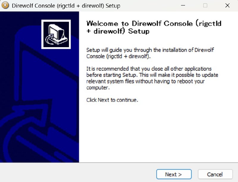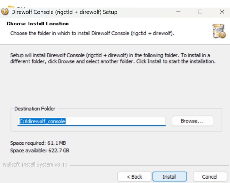 インストール先はデフォルトのままC:\direwolf_consoleにしてください