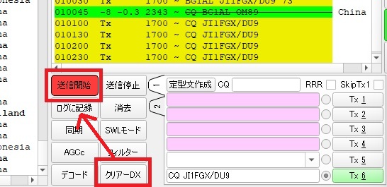 他の局を呼ぶか交信中のリトライでタイムアウトすると自動で「クリアーDX」を押してから「送信開始」を押します