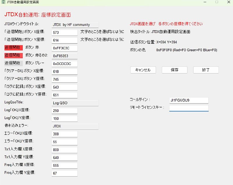 JTDXウインドウのボタンの座標を設定します |