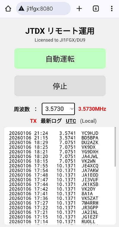 スマートフォンやコンピューターからJTDX自動運用をコントロールできます