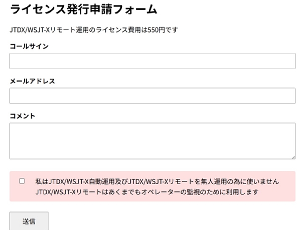 | コールサイン: JTDXリモート運用のライセンス登録に必要です |