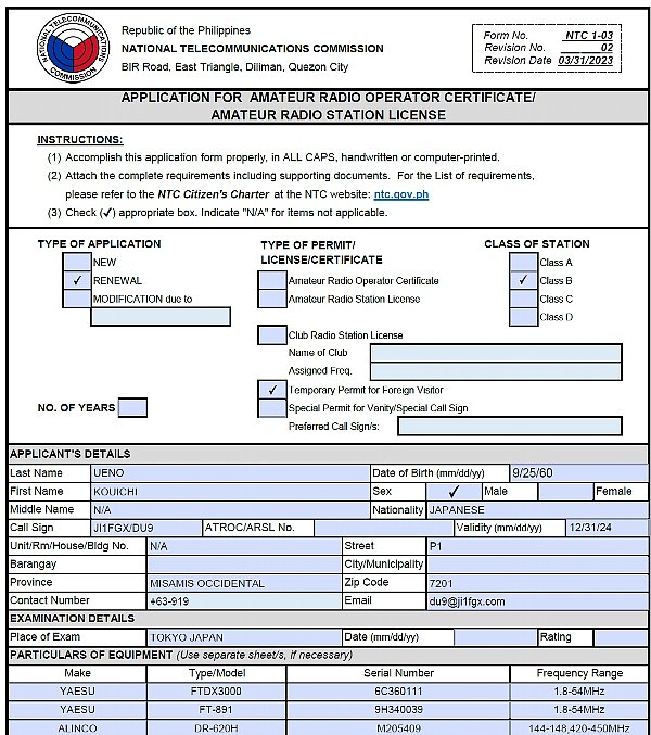 今年もアマチュア無線のテンポラリーライセンスの更新をしました