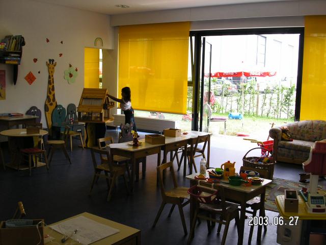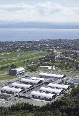We were allowed to climb the cranked-up tower in the booth next door. I processed it with PhotoShop to make a panoramic photo.