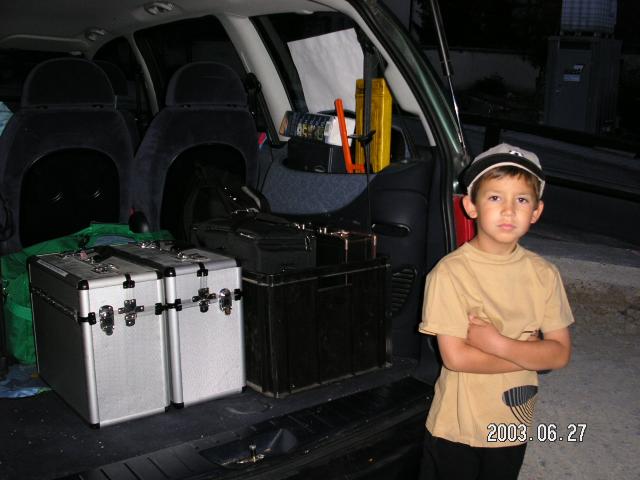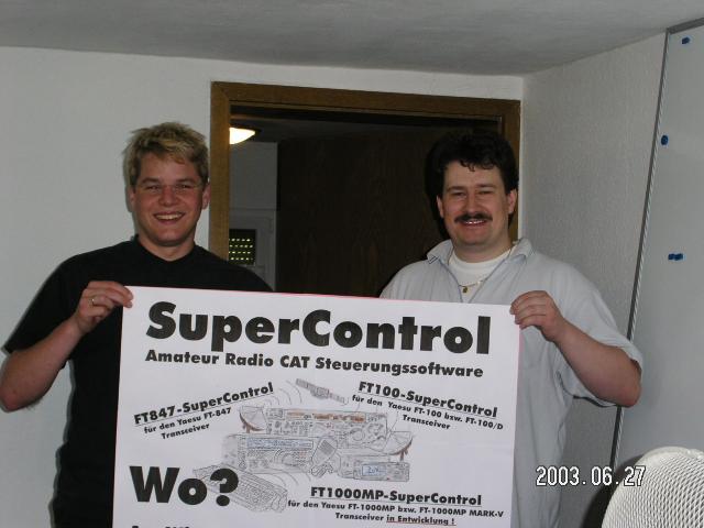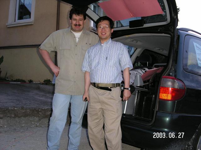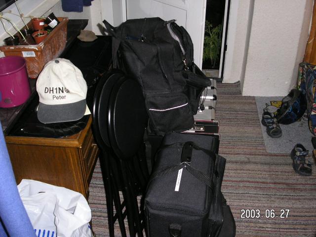 DH1NGP (Peter) and DO5SAM (Andy) Preparing to exhibit late into the night on June 26, 2003