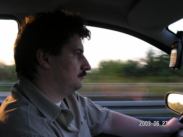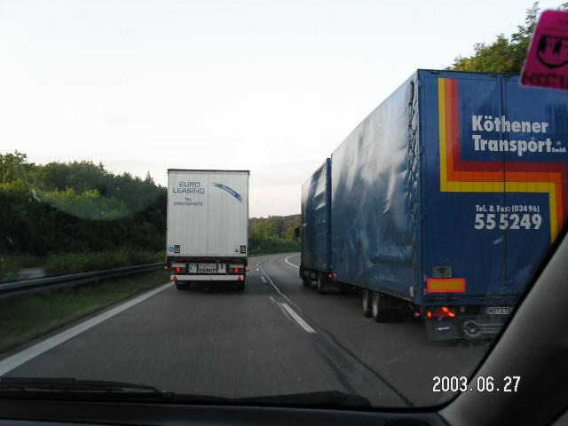 On the autobahn, even when driving at 160 km/h, you are passed from the left at a great speed! Sometimes when a truck comes out of the left lane, it slows down from 160Km to about 80Km all at once. I unintentionally step on the passenger seat, but Peter is very calm.