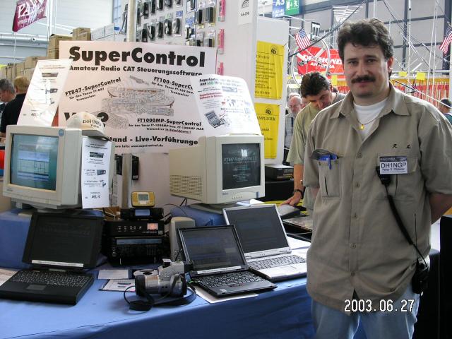 I demonstrated a remote control shack using the Internet. At home, I have a computer with SuperControl and NetMeeting running and an FT-847 waiting for me. Access to the Internet from the venue and control your home server with a laptop computer The hustle and bustle of 7Mhz was heard throughout the venue and attracted a large audience!